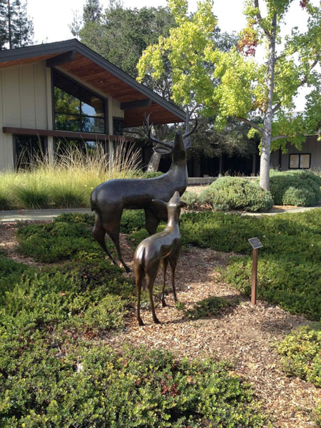 "Star Gazers", by Miles Metzger, a life-size bronze sculpture of a stag and fawn, is placed in front of City Hall and popular with all viewers. |